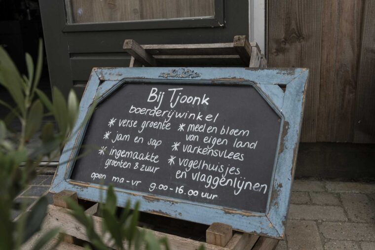 Een duurzaam douglas toegangshek markeert de toegang tot de boerderij. Natuurlijk zelf gemaakt en voorzien van ons eigen logo. Zo is niet te missen waar je bent.