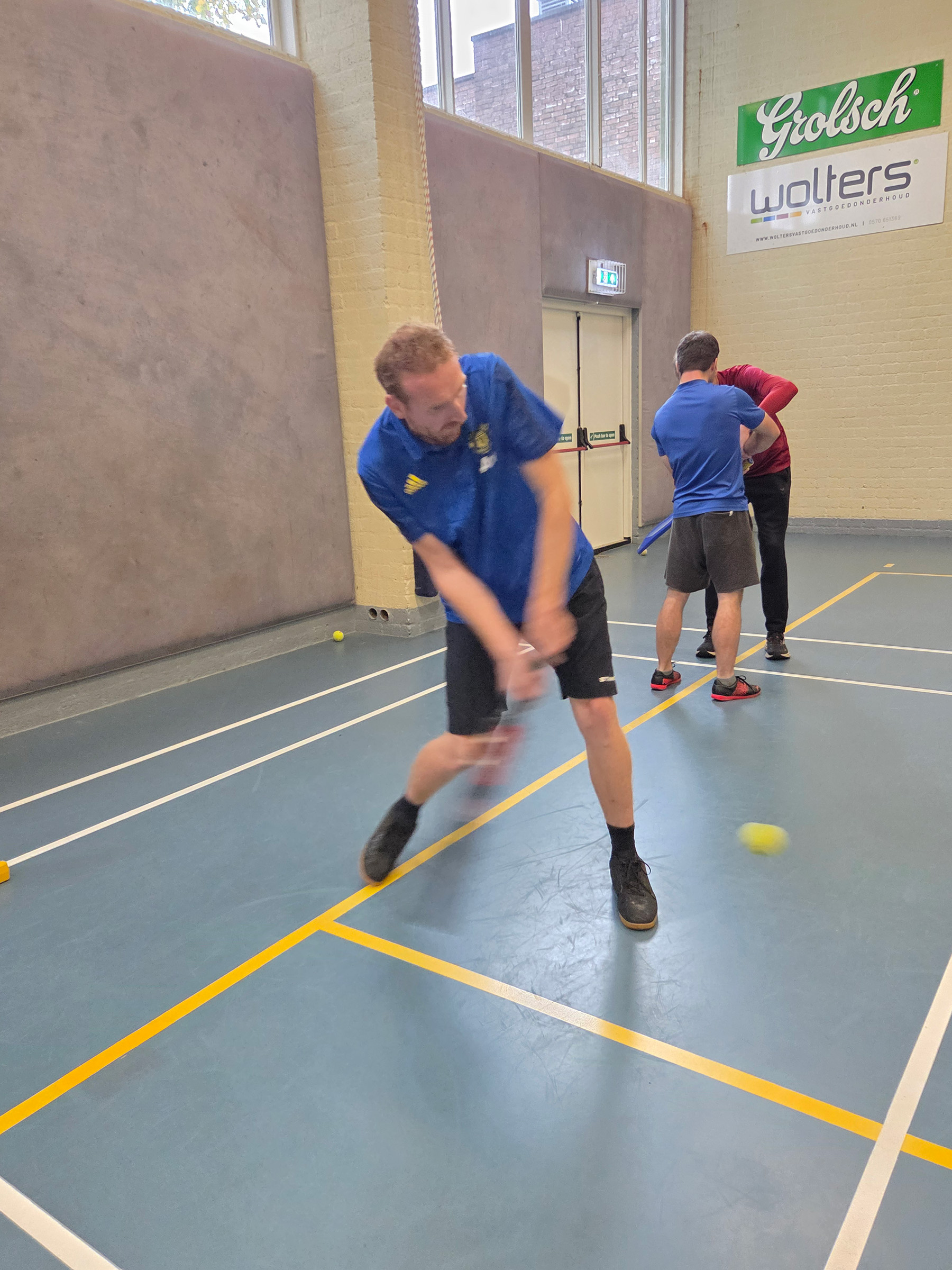 Na dit slaggeweld werd er een partijvorm gespeeld. Er werden koppels gemaakt en ieder paar kreeg x-aantal ballen om zoveel mogelijk punten te scoren. Het was wel om het echie, en dat was vanaf de 1e bal goed zichtbaar in enthousiasme en fanatiek meedoen. Het uur vloog voorbij. Sommige deelnemers vonden dat te snel en kijken uit naar 2e ronde.
