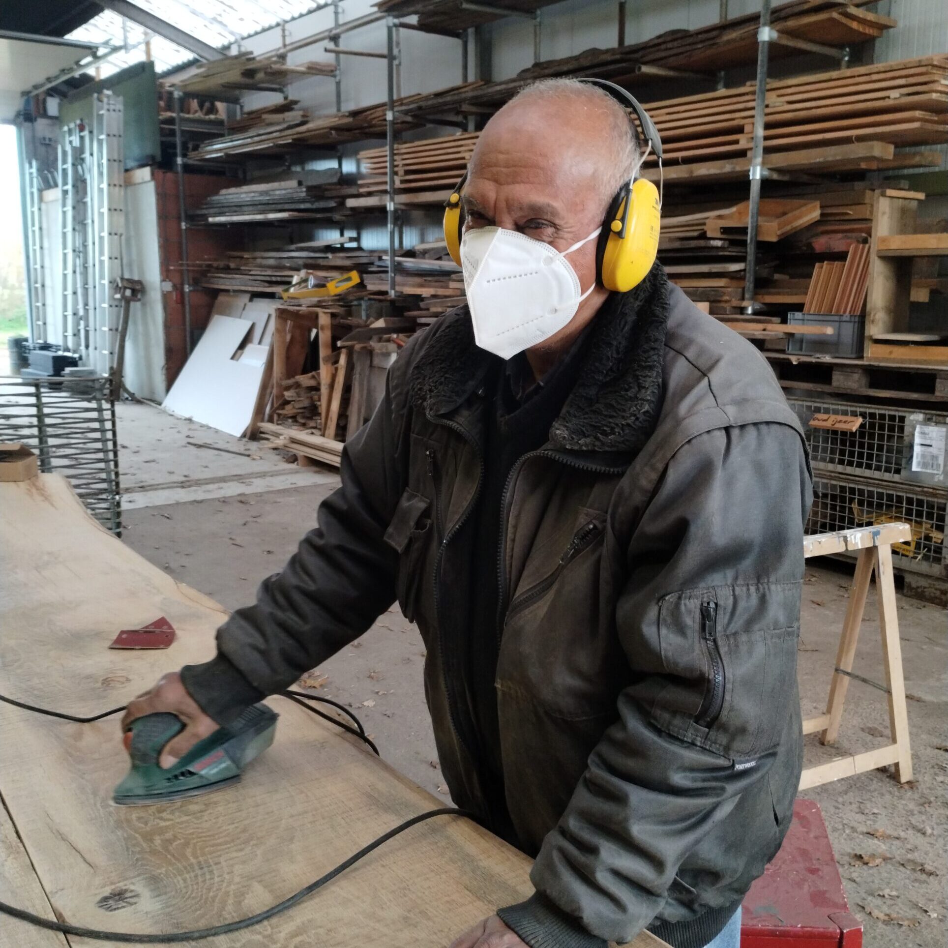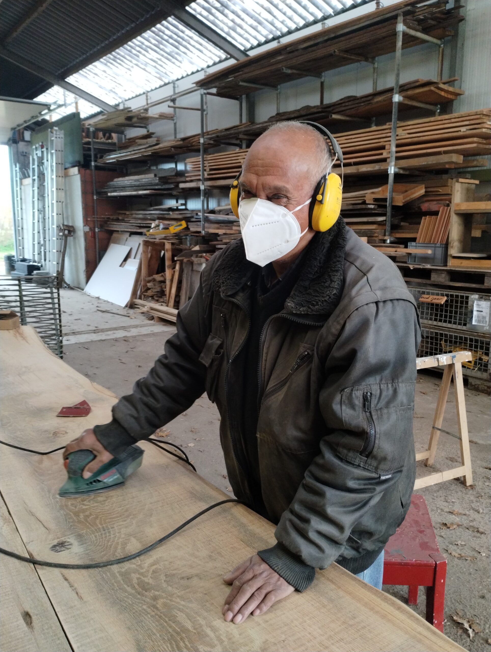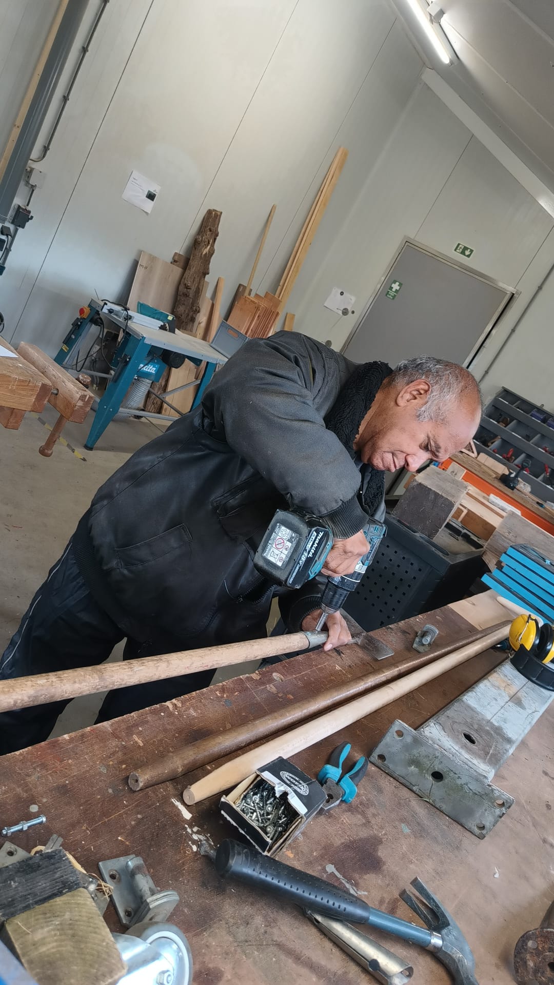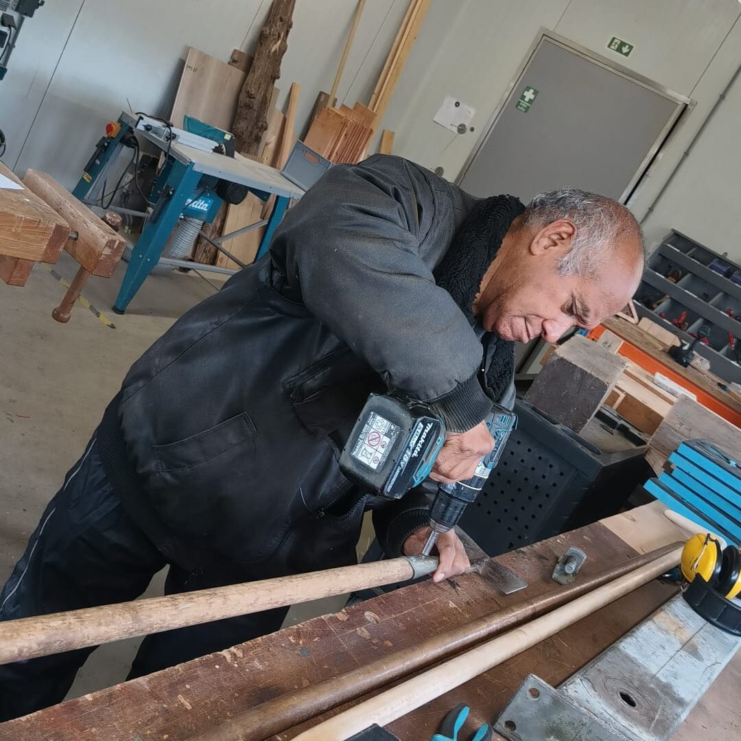 In de maakstal werkt hij met hout en andere materialen. Over Ronnie, zijn teamleider, zegt hij: