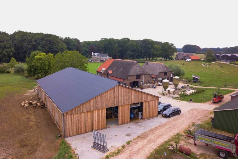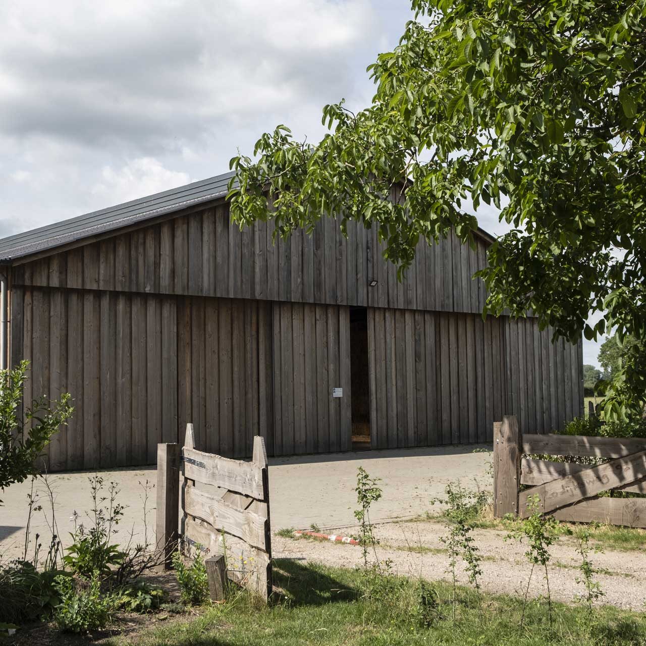 Het beitsen van schuurdeuren en andere houten onderdelen is een terugkerende klus voor het landgoed.