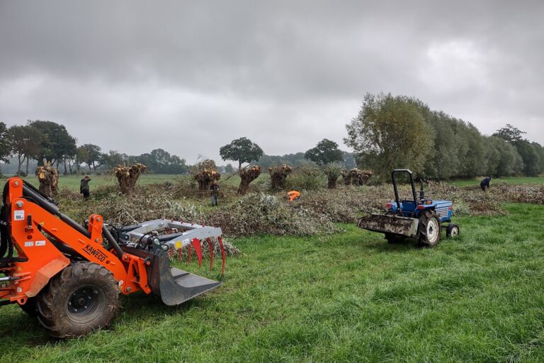 Op het landgoed is, net als op de boerderij, altijd werk te doen. Inmiddels mogen wij ieder jaar houtsingels afzetten, bomen snoeien of wilgen knotten…