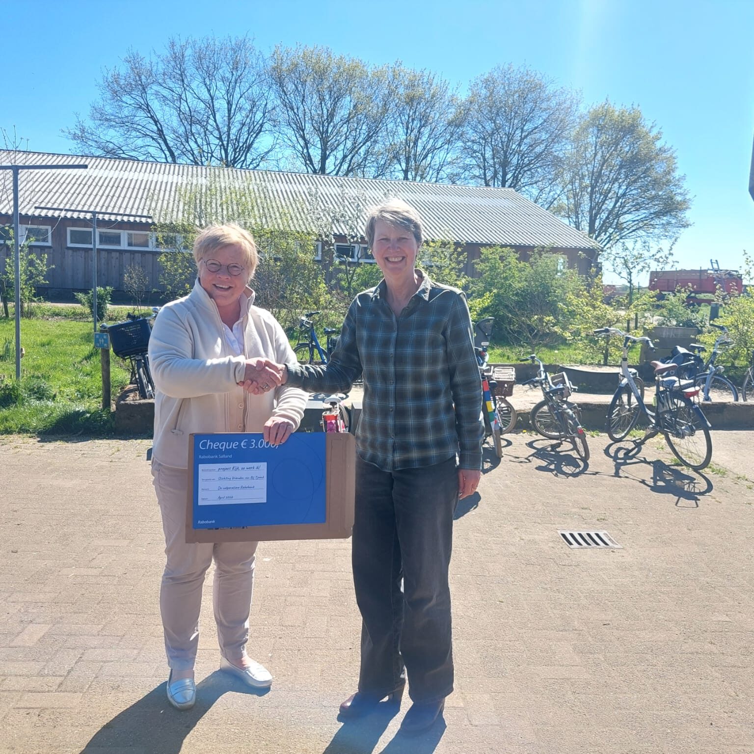 Woensdag 22 april 2026 ontving de Stichting Vrienden van Bij Tjoonk een cheque van 3.000 euro van de Rabobank. Dankzij deze steun van de Rabobank Coöperatief Dividend kan de Stichting Vrienden van Bij Tjoonk aan de slag met de productie van een multimediaal magazine. Het agrarisch leerwerkbedrijf Bij Tjoonk, gevestigd in Colmschate (Deventer), biedt aan ongeveer 50 mensen met een afstand tot de arbeidsmarkt wekelijks leer- en werk-activiteiten aan.