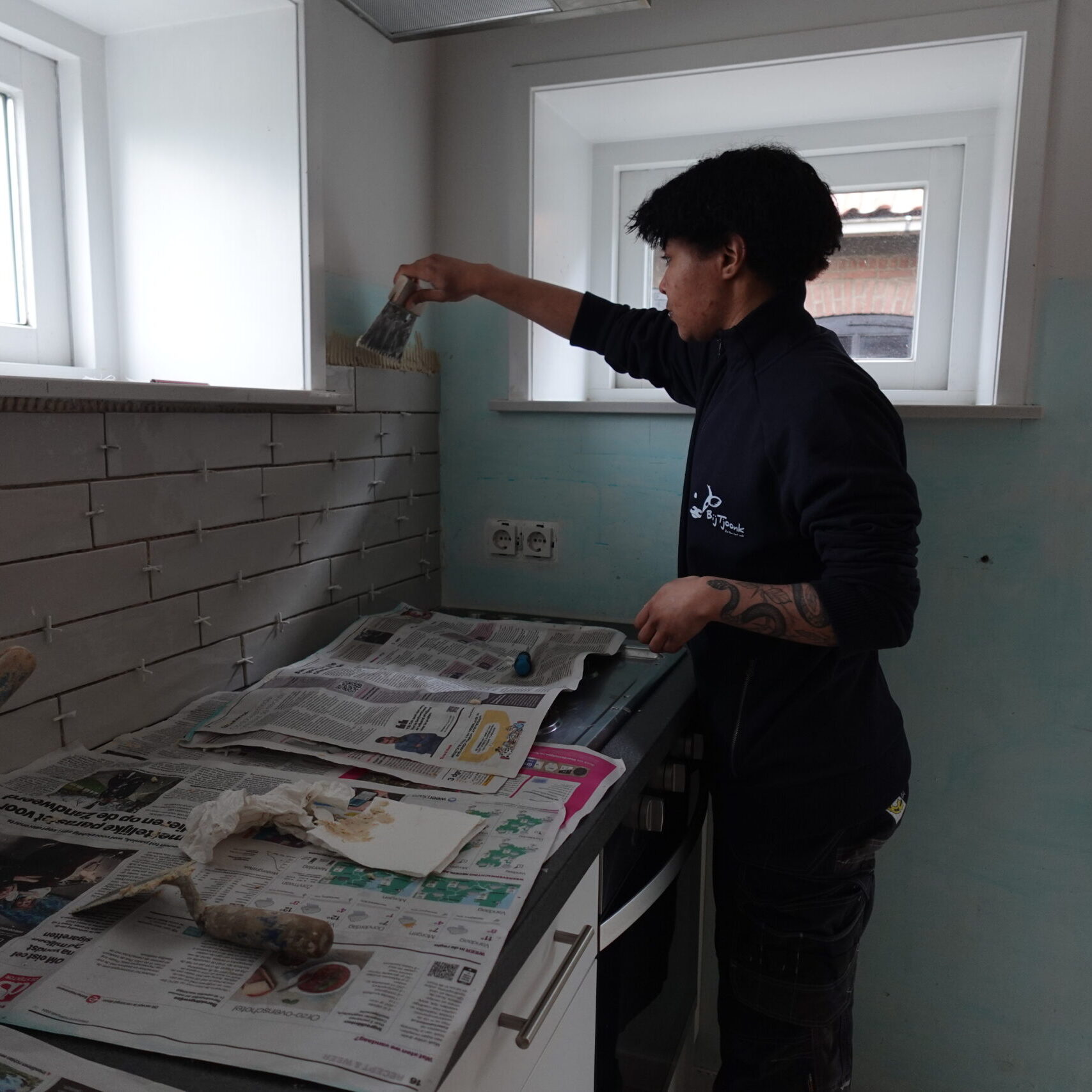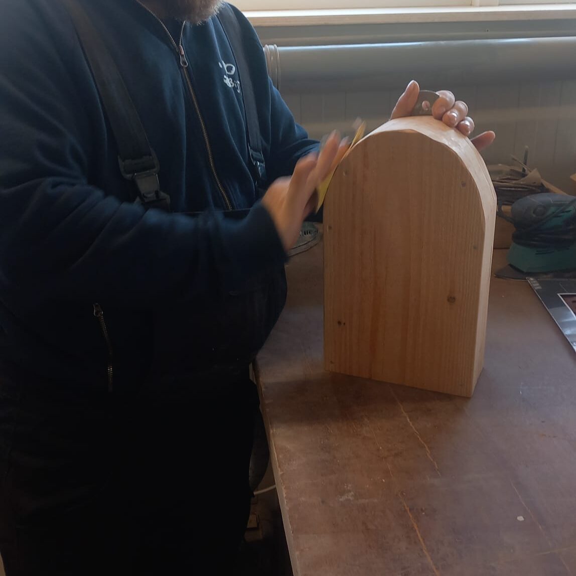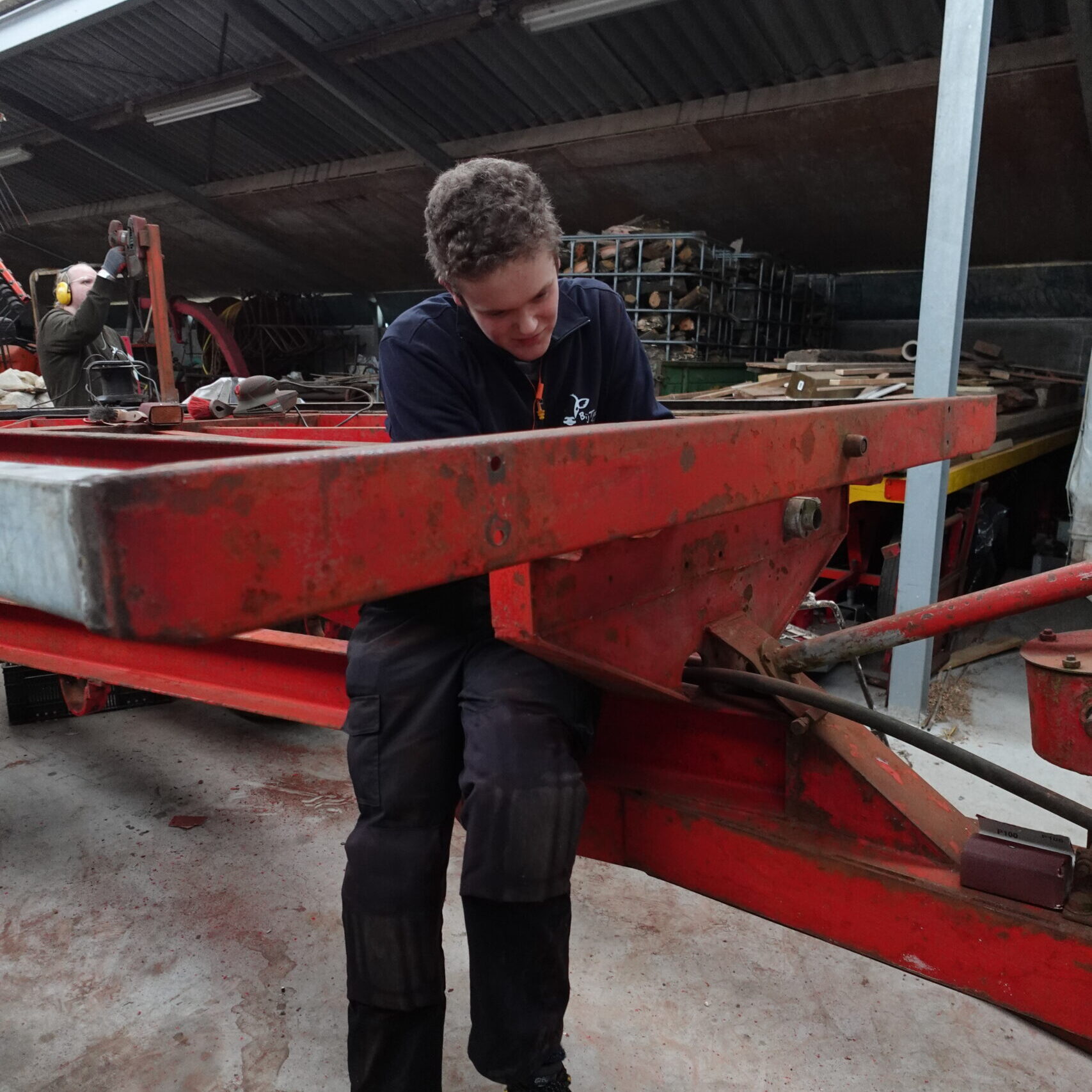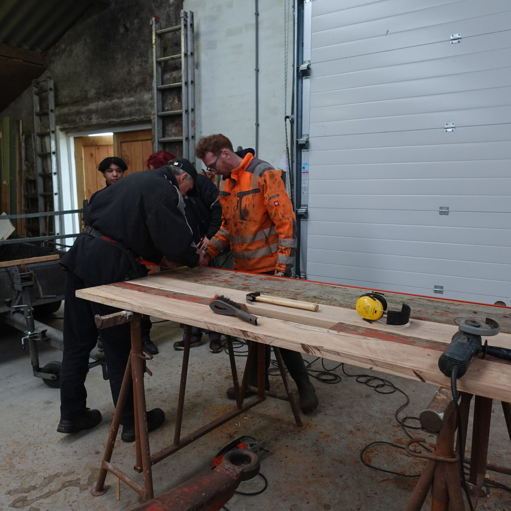 Bij alle technische klussen op de boerderij bekijken we eerst wat we daar zelf aan kunnen doen, soms met wat hulp van buiten. Het timmeren van de potstal en diverse andere dierenverblijven hebben we dan ook met onze deelnemers samen gedaan. Meestal hebben we ook een groot project waar we met een groep aan werken, het opnieuw opbouwen van een landbouwwagen of restaureren van een bouwkeet bijvoorbeeld. Kleinere projecten zoals het maken van snijplanken en het inbranden van teksten doen we ook. Voor kleine reparaties aan de fiets draaien wij onze hand ook niet meer om.