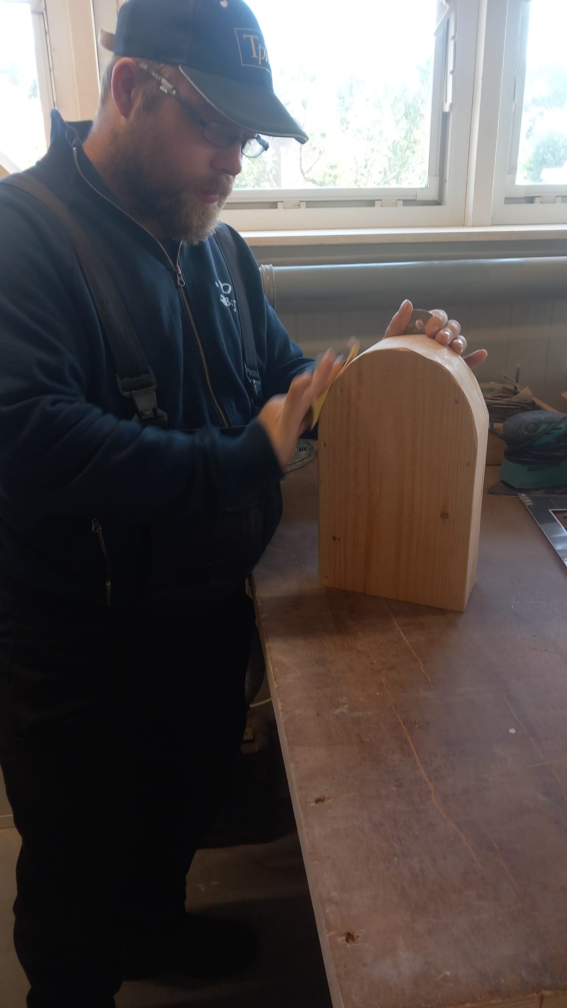 Bij alle technische klussen op de boerderij bekijken we eerst wat we daar zelf aan kunnen doen, soms met wat hulp van buiten. Het timmeren van de potstal en diverse andere dierenverblijven hebben we dan ook met onze deelnemers samen gedaan. Meestal hebben we ook een groot project waar we met een groep aan werken, het opnieuw opbouwen van een landbouwwagen of restaureren van een bouwkeet bijvoorbeeld. Kleinere projecten zoals het maken van snijplanken en het inbranden van teksten doen we ook. Voor kleine reparaties aan de fiets draaien wij onze hand ook niet meer om.