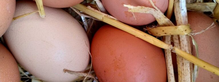 Elke dag leggen onze scharrelkippen weer lekkere eieren. Vul zelf een doosje in onze boerderijwinkel.